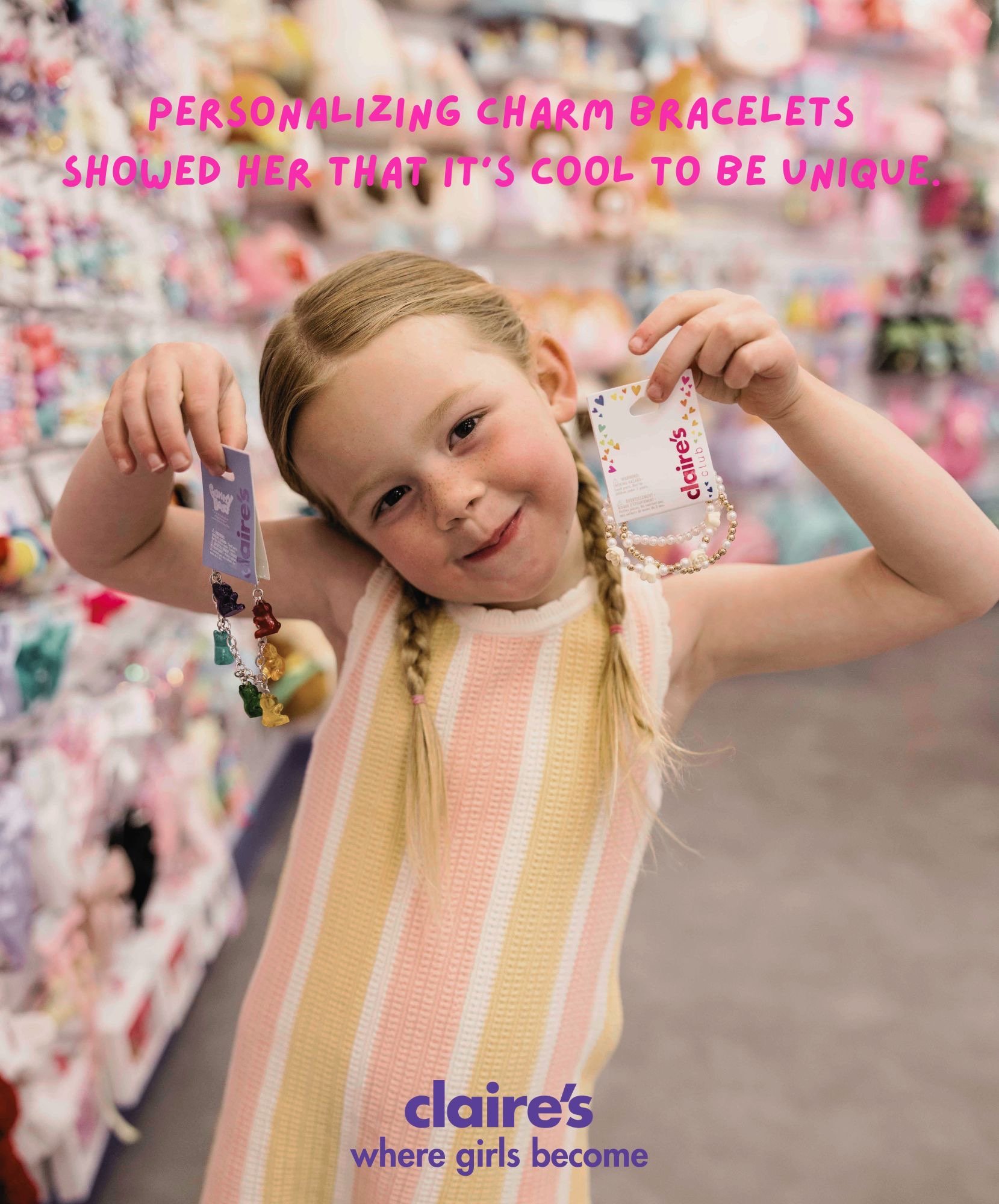 Getting ears pierced is the first mark of bravery for many young girls. Claire’s essence is to help girls discover empowering self expression, from the very first accessory.